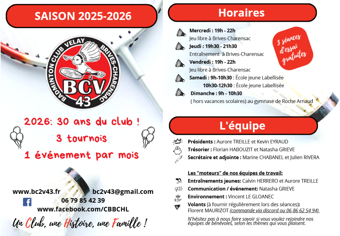 Créé en 1996, le BC²V43 (Badminton Club Brives Charensac Velay), est le plus ancien club de badminton du département.